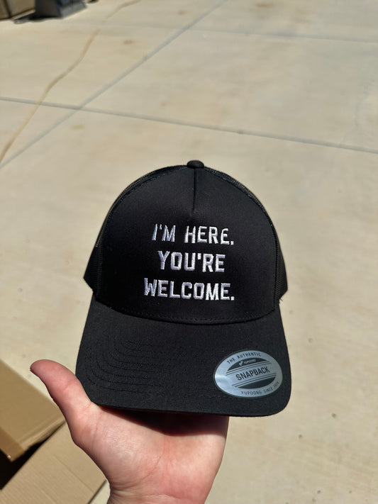 I'm Here You're Welcome slightly imperfect hat