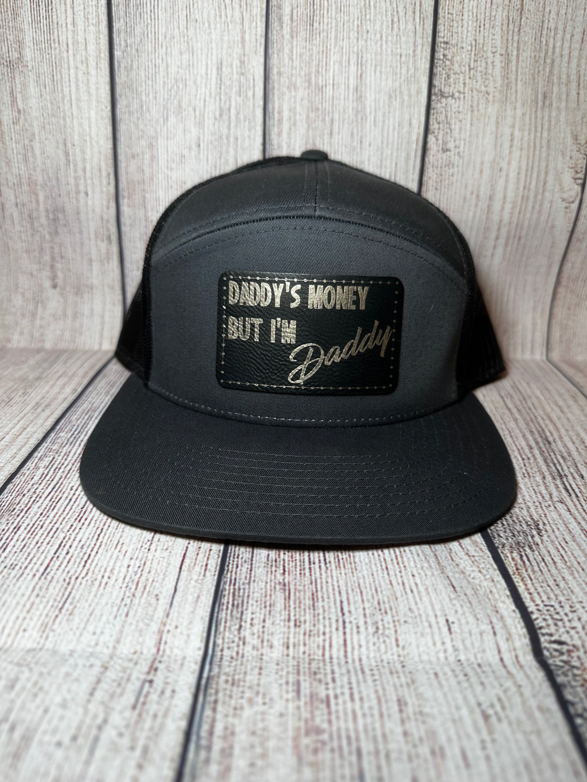 Your choice of hat with a leatherette patch "Daddy's money but I'm Daddy" For all the hardworking, self-sufficient, go-getters out there. Please choose your hat style. If you want a hat color or leatherette color not listed, please message me and we can make it happen!