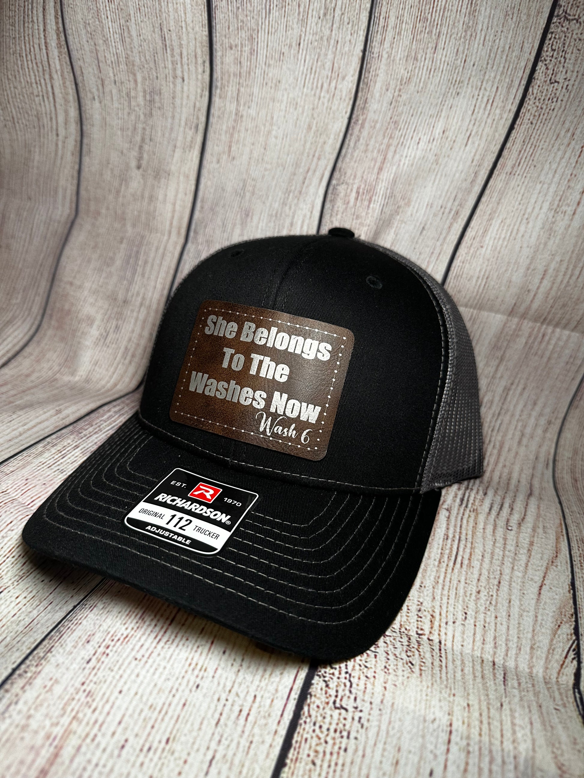 Richardson 112 hat with a leather patch "She Belongs To The Washes Now" for all wash 6 fans.