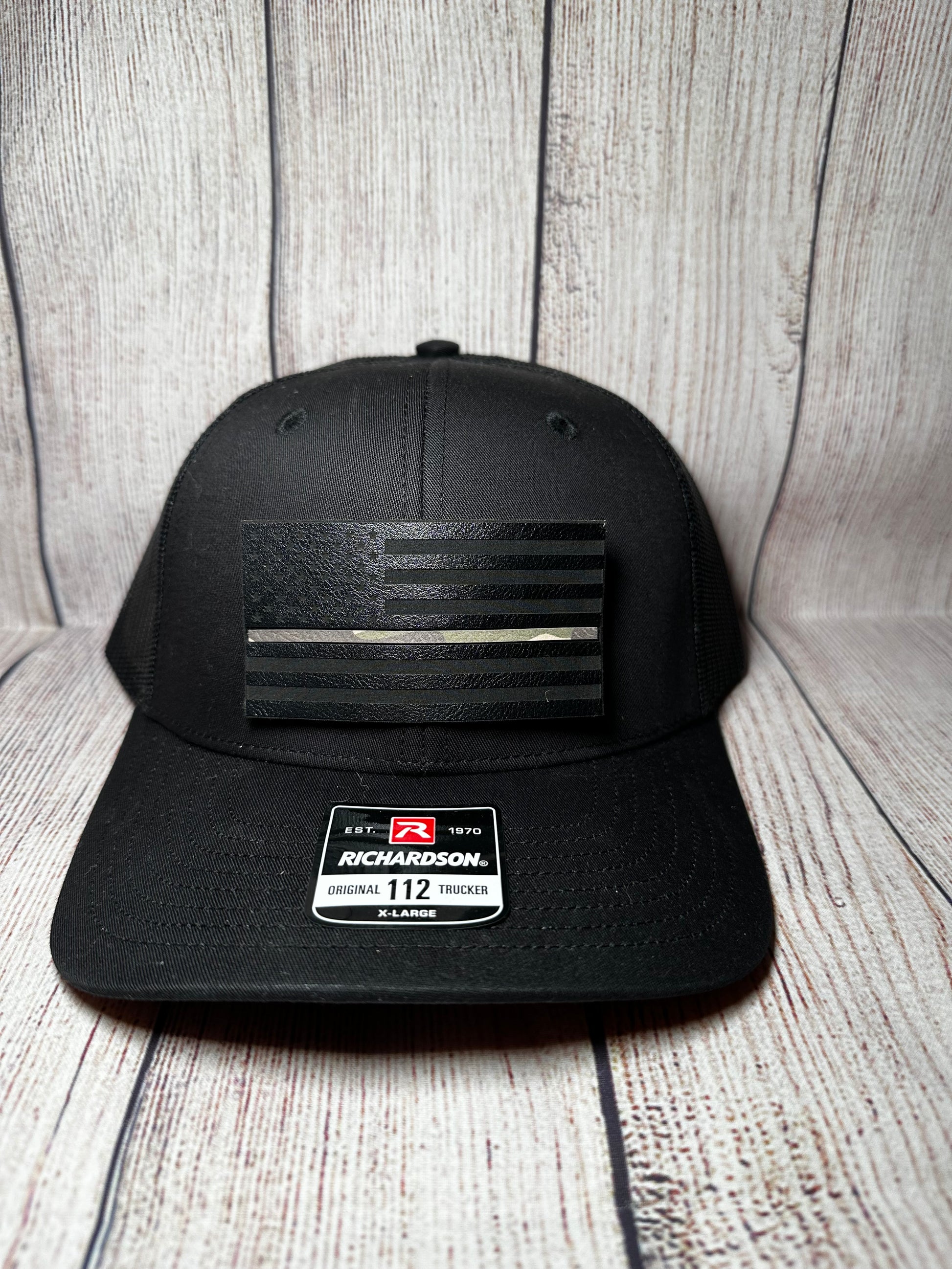 black leatherette patch with thin camouflage line