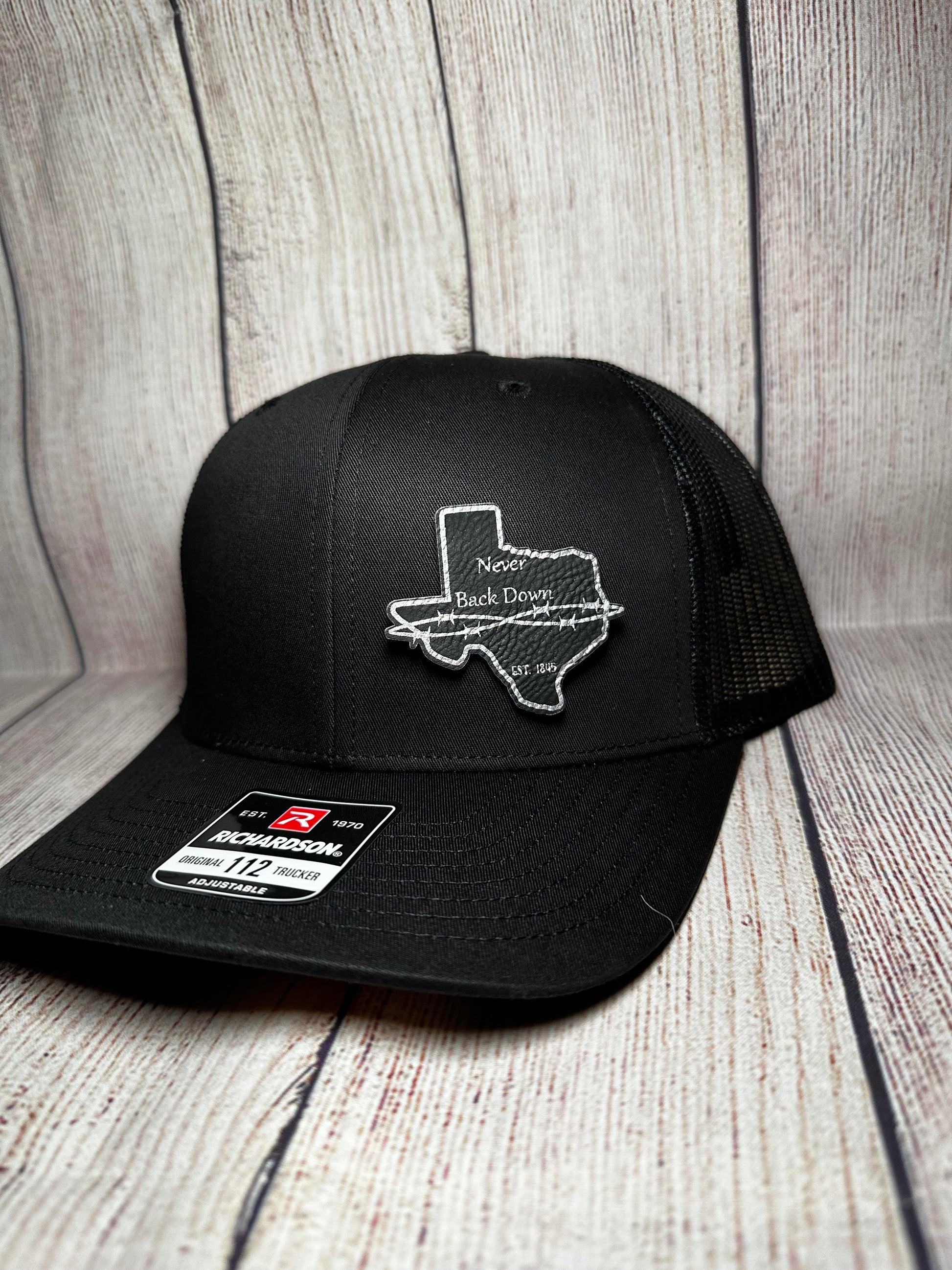 Never Back Down Texas hat. Please choose your hat style and leatherette color. If you want a different color than listed, just let me know!